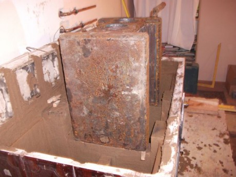 Néhány mostanában épült cserépkályha, az építés folyamán