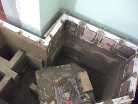 x7 sarkas vízteres cserépkályha a kémény köré